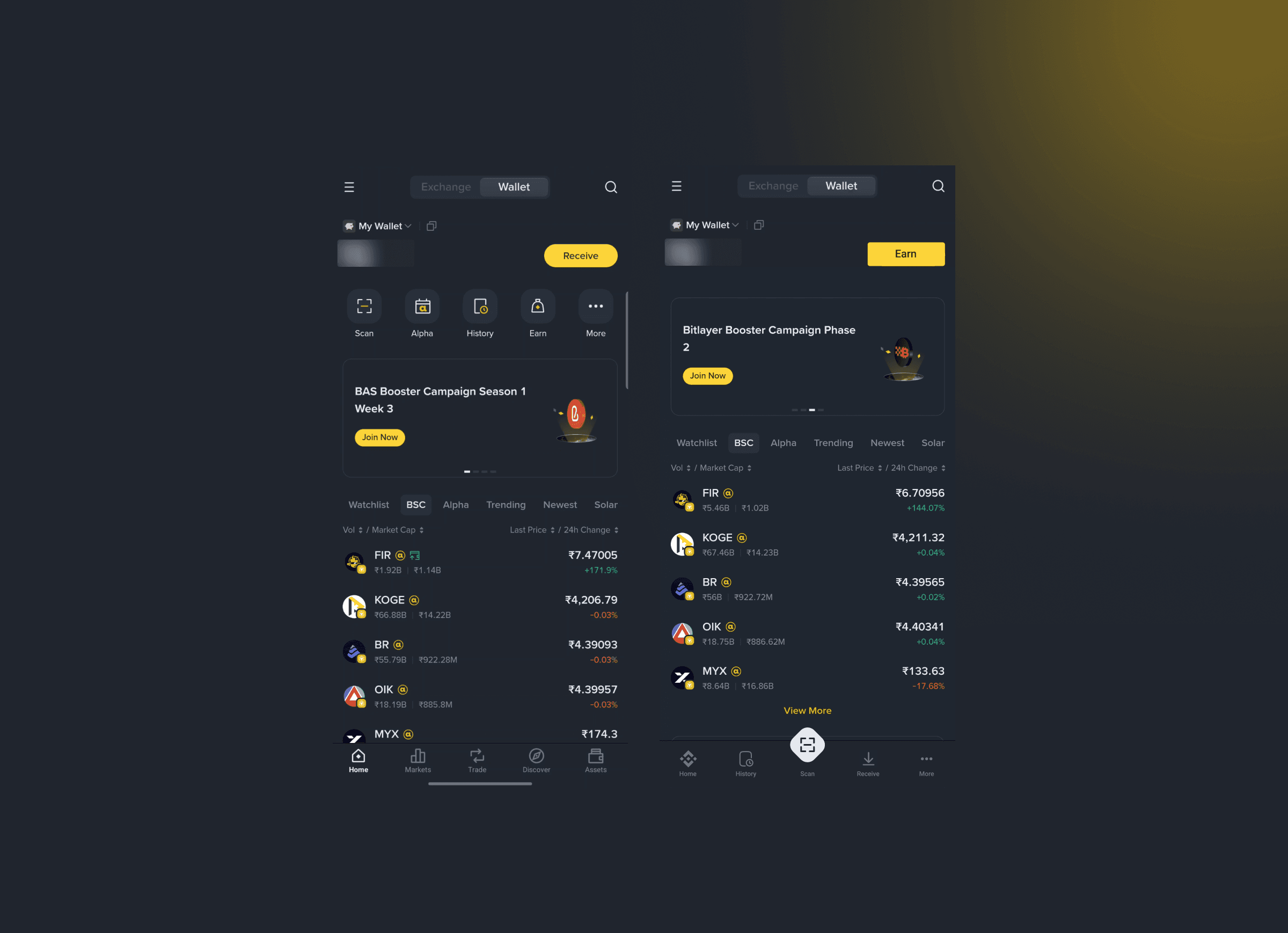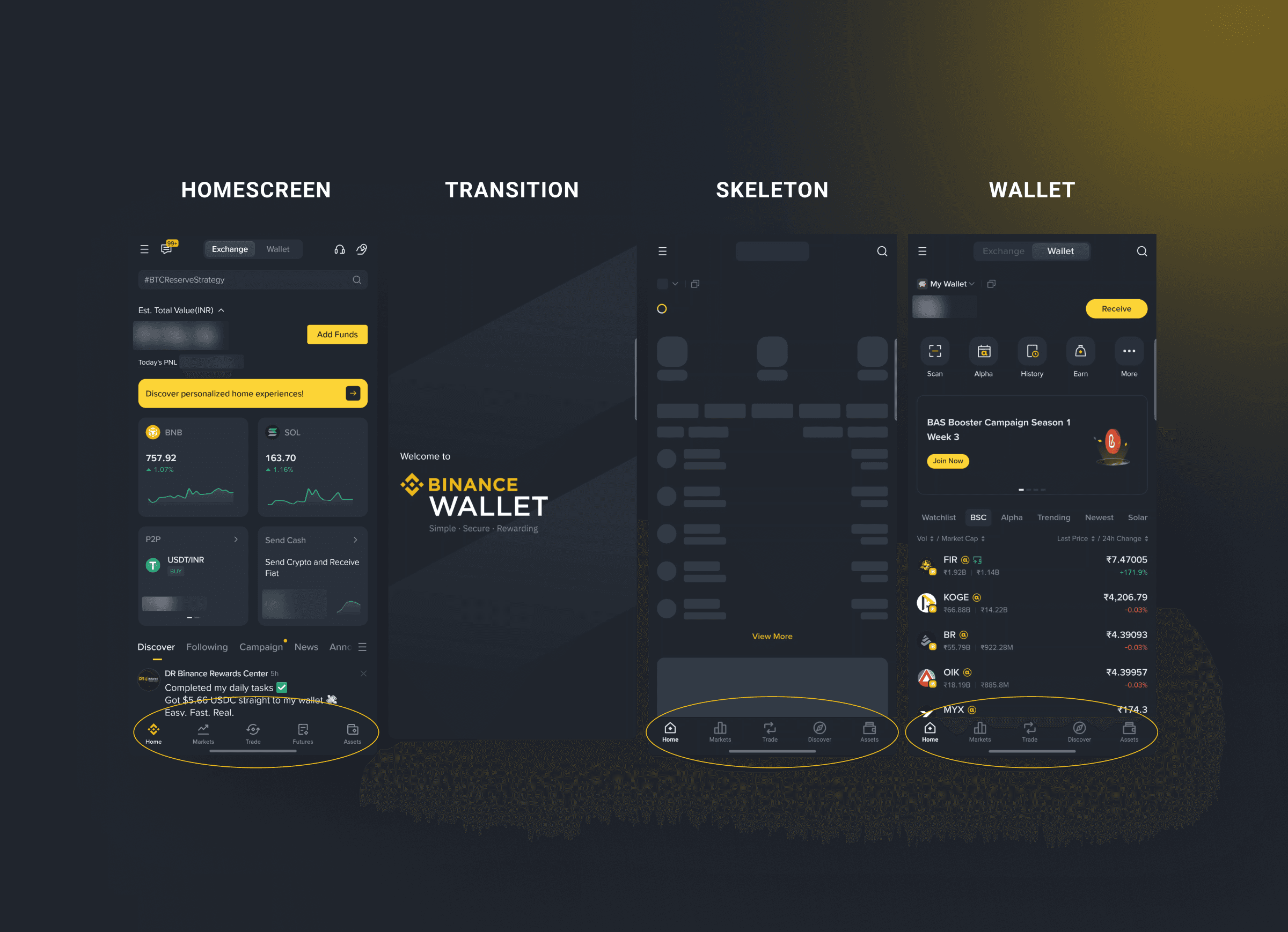 The wallet experience is now visually separated from the rest of the app, a clear context switch supporting user ownership and asset security.