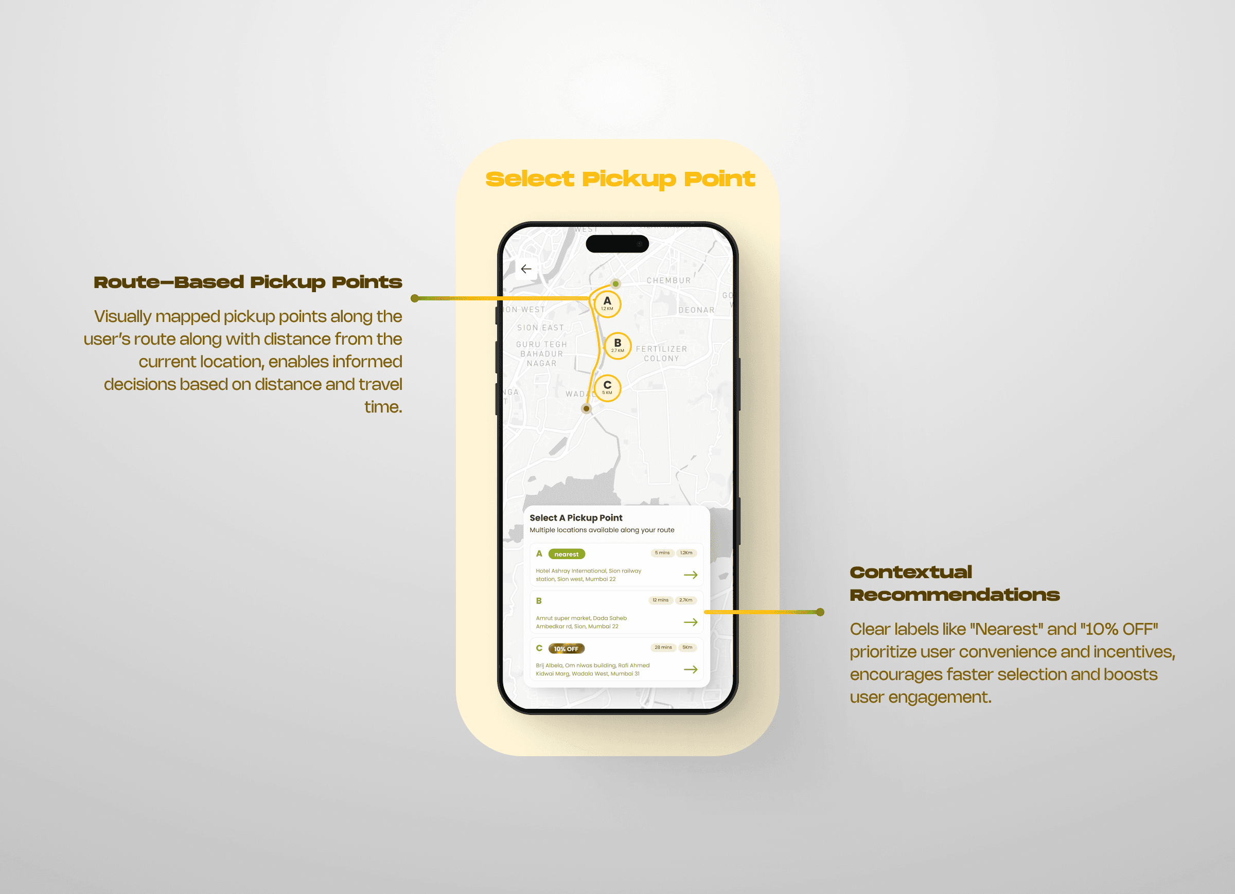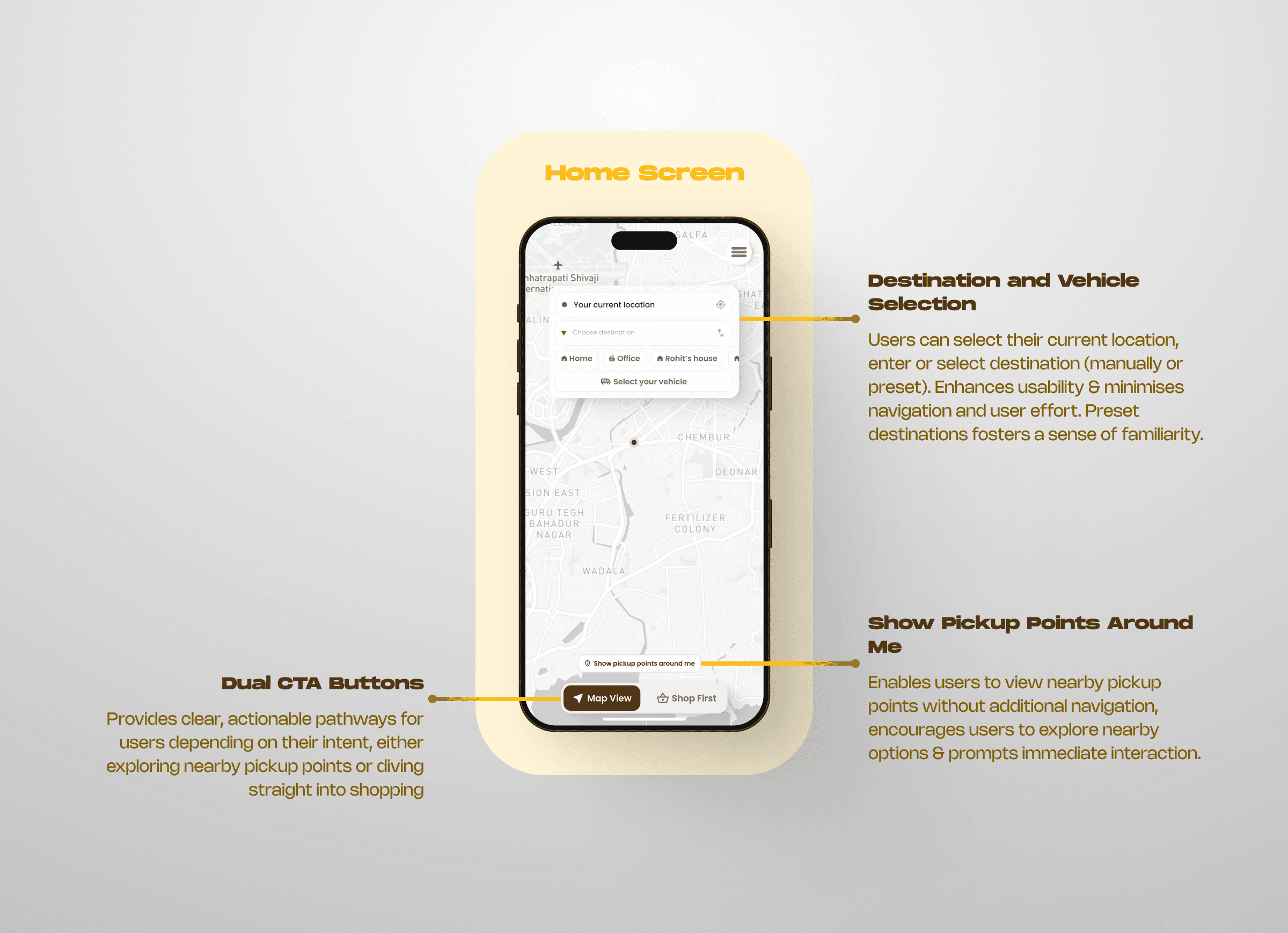 A seamless, intuitive UI minimized decision-making and provided real-time updates on pickup availability.